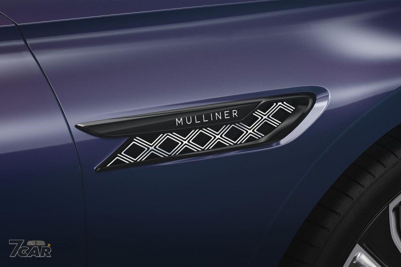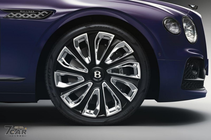 Blackline Specification 亮黑套件如其名,就是將 Flying Spur Mulliner 原先外觀上所有的鍍鉻裝飾都進行黑化處理,涵蓋的元件包括車頭水箱護罩、大燈周圍飾條、引擎蓋中央飾條、Flying B 立標、外部後視鏡上半部、左右側葉子鈑金屬裝飾…..等,呈現出更為低調的奢華美學,另外還搭載了 22 吋 Mulliner 多輻式雙色鋁圈以及永遠正立的輪框廠徽。