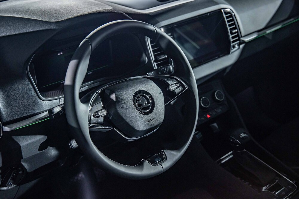 內裝質感IN實力 內裝是KAROQ改款新車另一個吸睛焦點:10.25吋全中文全彩數位儀表搭配9.2吋的CNS 3.0資訊娛樂系統,讓這款SUV的駕駛座艙既時尚又科技,整體風格又依車型不同而有所區隔:新雪山版採用的是亮銀髮絲紋飾板佐以舒適布紋座椅,搭配懸浮式飛梭滾輪多功能方向盤;進階的新玉山版 SportLine則為Carbon跑車運動化黑色飾板配上跑車式布紋座椅,方向盤則為附換檔撥片、音響及電 話控制功能的三幅跑車式多功能方向盤 。
