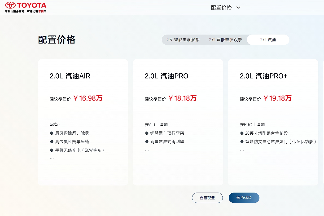 廣汽豐田Wildlander威蘭達將2.0L AIR FWD列為入門車型