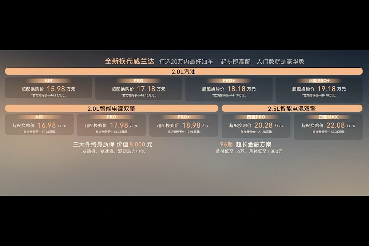 然而,廣汽豐田Wildlander威蘭達更是緊抓消費者在乎的點,不僅也提供人民幣10,000元煥新購車禮金優惠,針對車輛最重要的三大件:引擎、變速箱與Hybrid複合動力電池,提供價值人民幣8,000元的「終身保固」方案。