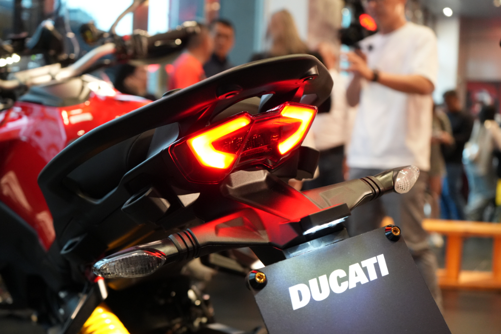 而這次人體工學上,台灣標準坐高為790mm至810mm,還配備Ducati Skyhook半主動電子懸吊,提供「最低預載」功能,騎士可按鍵降低後避震,提升雙腳著地性,且支援獨立選擇Comfort、Dynamic、Low Grip懸吊模式,與騎乘模式分開調整,也具備標配六軸IMU,完整電子控制系統,包含彎道ABS、DTC循跡系統、DWC防浮舉、EBC引擎煞車、DQS進退快排、與5種騎乘模式 (Sport/ Touring/ Urban/ Enduro/ Wet) 搭配4段動力輸出模式 (High /Med /Low /Off-Road) 。
