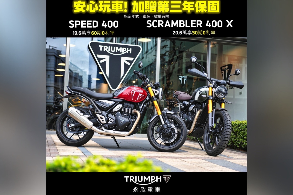 凱旋Triumph SPEED 400與SCRAMBLER 400 X優惠來囉!還再送第三年保固!