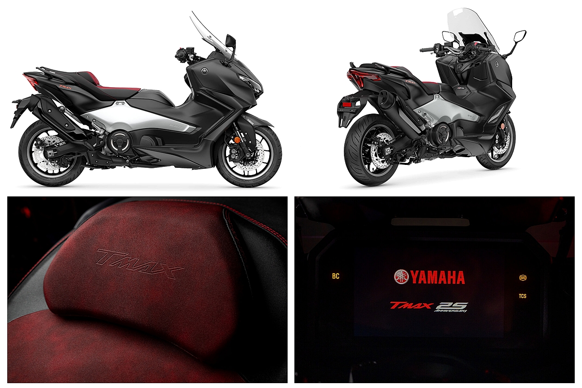 Yamaha TMAX560 25th Anniversary ABS特別版基於現行款TMAX560 ABS打造,外觀特點在於採用金屬銀色車身塗裝、紅/黑雙色特殊皮革座椅、紅色雙縫線以及特殊標誌、側蓋TMAX紅色鍍鉻徽章、護板中央25週年紀念徽章以及啟動會顯示25周年記念的儀表等。