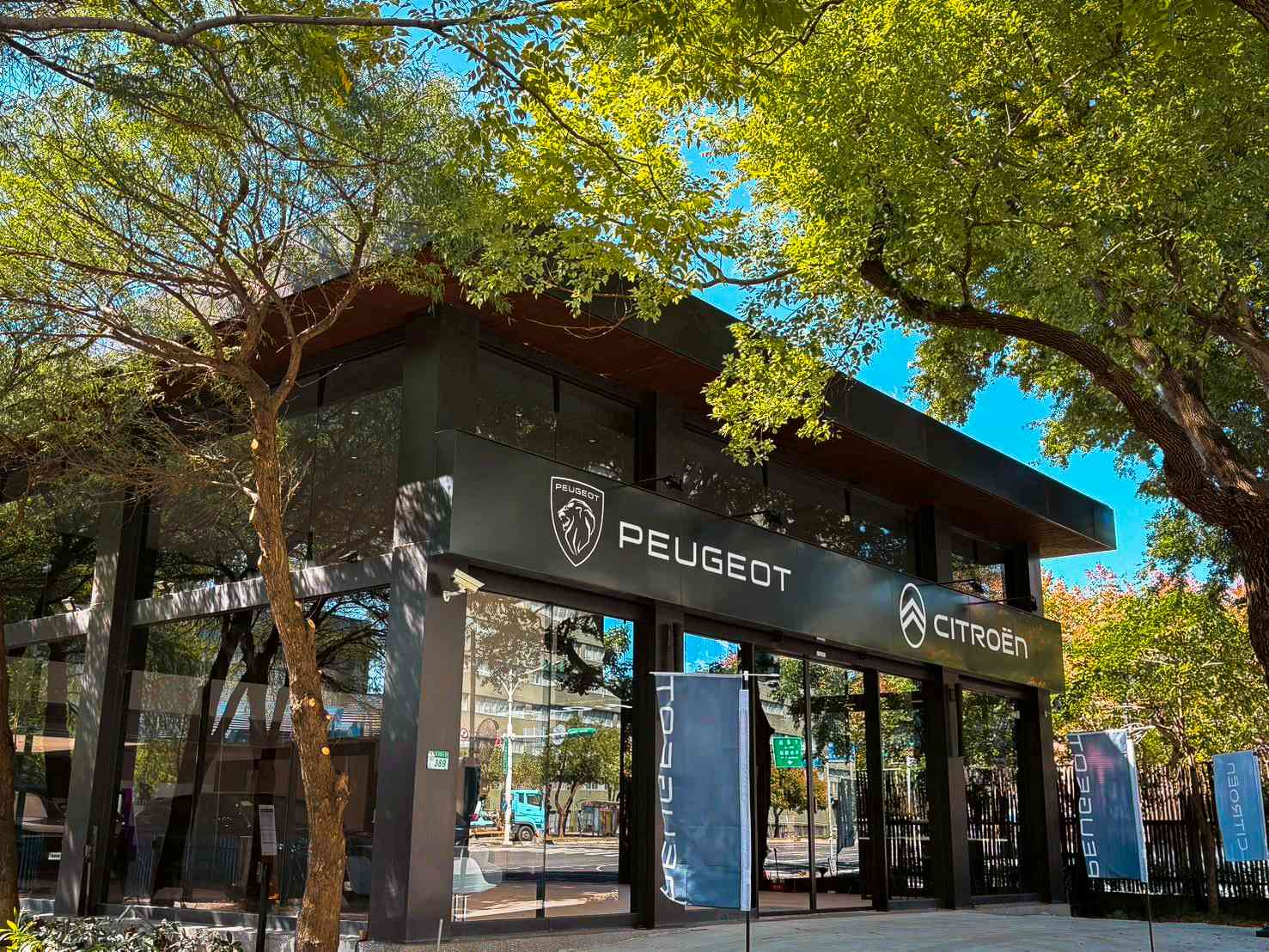 據點周邊綠意與城市節奏交織,使展示中心以法式優雅結合自然元素打造空間風格,呈現 PEUGEOT 與 CITROËN 所代表的都會生活美學,營造專屬品牌的沉浸式賞車體驗。