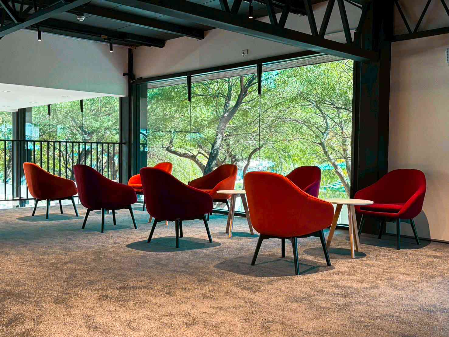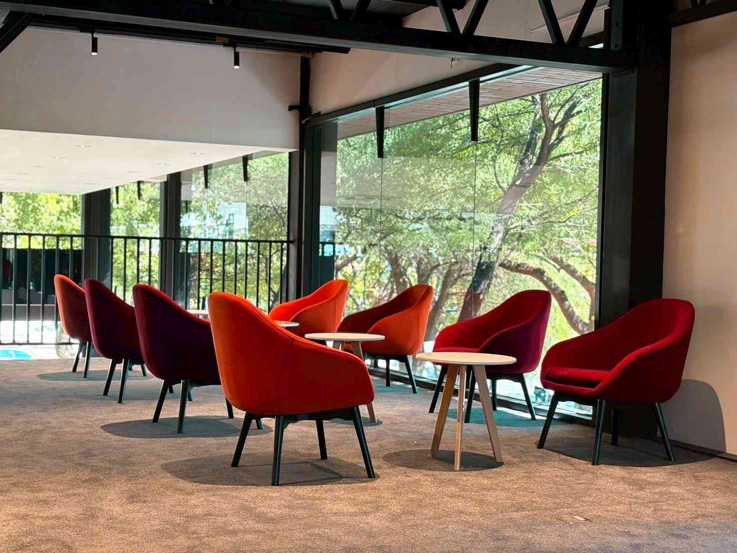 建物外觀採大面積玻璃引入自然光線,樹影光影層疊,使室內呈現明亮、開放且富生命力的視覺表現。展示空間以流暢動線搭配新世代品牌識別,讓來訪者在綠意、光影與法式美學之間自在穿梭;從開闊展示區到沉穩休憩空間,每一處細節皆以細膩設計語彙鋪陳。鬧中取靜的空間氛圍,亦使北投據點成為北台灣兼具功能性與美感的全新汽車獨特服務地標。