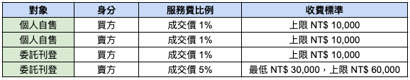 2. 委託代售成交時,平台將對賣方收取物件成交價 5%服務費。