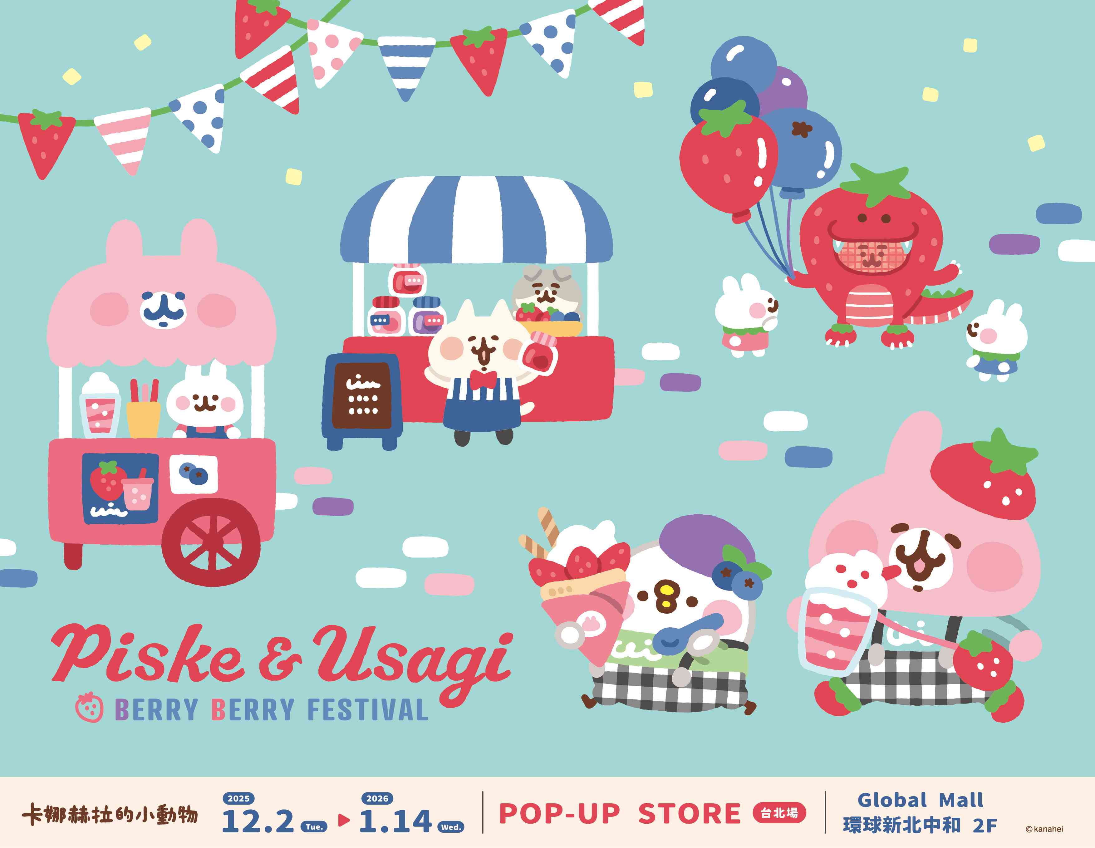 P助與粉紅兔兔帶著甜美可口的草莓及藍莓來狂歡了!卡娜赫拉的小動物《莓果祭典》快閃店即將於12/2-1/14新北中和環球購物中心2F現身,六大繽紛莓果系打卡點,就從由粉紅兔兔扮演的「草莓龍」開始,還有小動物們一起開張的超可愛「莓果繽紛市集」,更別錯過小動物們聚集的「莓果扭蛋」一起扭出驚喜唷!這次近80款的莓果系列周邊商品,首推戴著莓果貝雷帽的P助或粉紅兔兔的超Q「飲料提袋」,感覺飲料風味都加倍了呢!手拿莓果聖代的小動物「證件套」怎麼能不馬上帶回家?還有讓人看了就忍不住笑的小動物莓果「造型夾」,通通打包就對了啊!