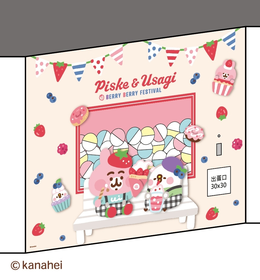 在快閃店遠方就看到一群超萌小動物們在歡樂慶祝著,原來是小動物們的莓果攤販及喵喵喵咪銷售員在邀請你一起加入「莓果繽紛市集」同樂啦!P助及粉紅兔兔一起舉著大草莓的「莓好時光」真是太萌了,快來跟他們拍照留念,繼續往內走馬上看到「莓果收成時」P助與粉紅兔兔化身小果農、手捧各種莓果的可愛模樣,讓人真想吃一口碗中的草莓唷!重頭戲登場!粉紅兔兔穿上「草莓龍」裝,旁邊還有小小兔們排隊等著領氣球,準備好扭出屬於自己香甜可口的「莓果扭蛋」了嗎?沒有扭到自己想要的也沒關係,旁邊就有一顆甜到發光的「閃亮莓」讓你存在相簿中,快來把這些莓好回憶帶回家!