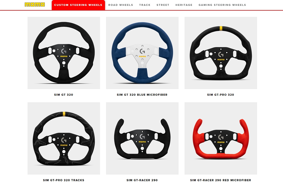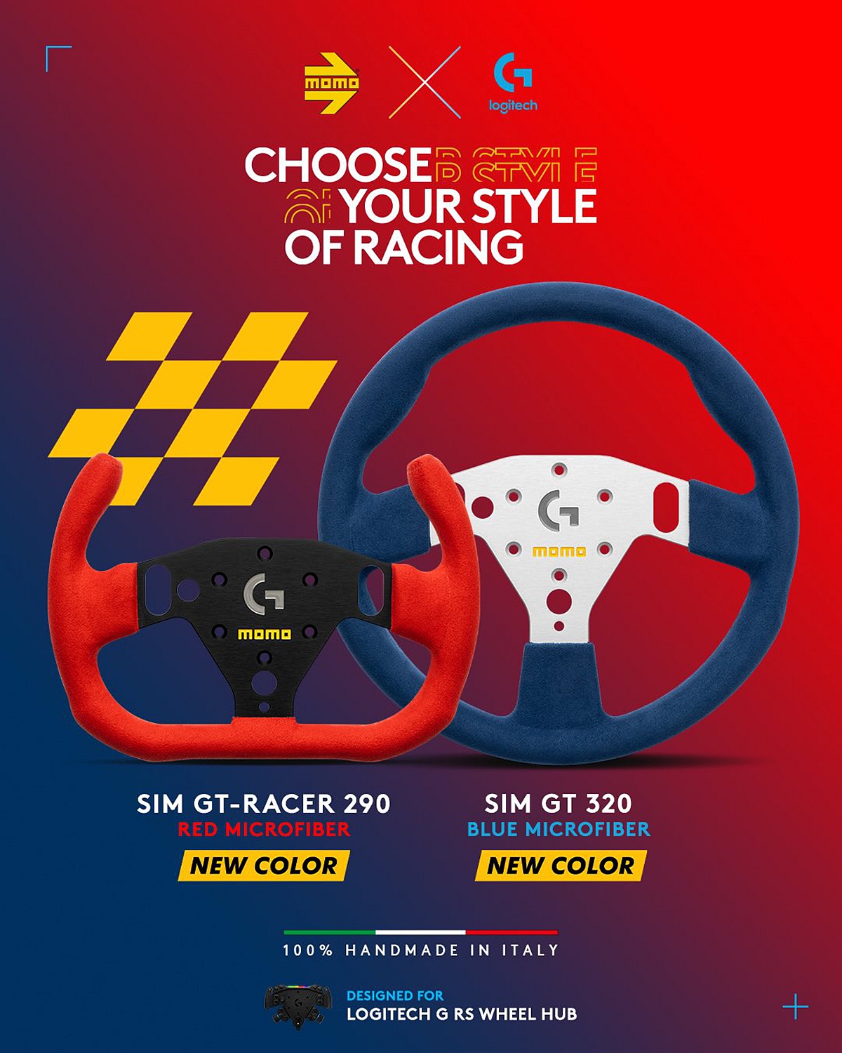 Logitech G羅技與MOMO合作打造的方向盤,其形狀與尺寸方面也幾乎跟車輛使用的相同,並且SIM GT-Racer 290方向盤直徑還與Logitech RS方向盤的290mm直徑相同; SIM GT 320方向盤則提供更大的320mm直徑設定。