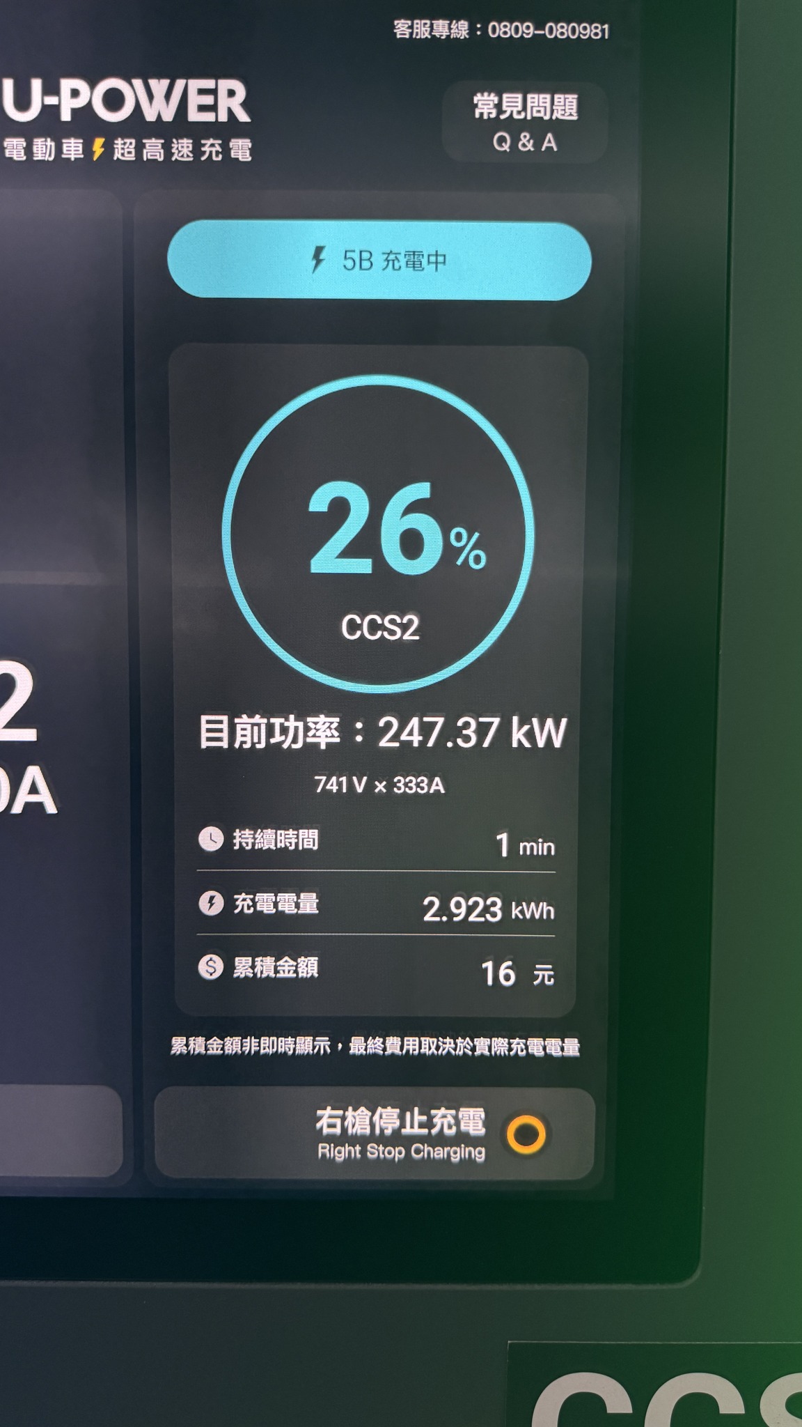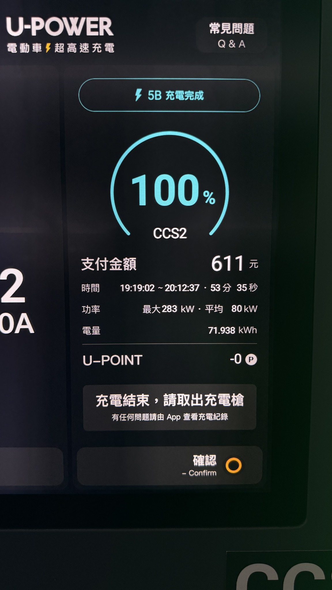1 充電到28%時,我有看到最大充電功率有278kW,不過賓士有解釋說這台是試裝車,所以沒辦法展現最大充電功率。u-power的Bob 有測出來最大充電功率有超過320kW,這部份給各位參考。