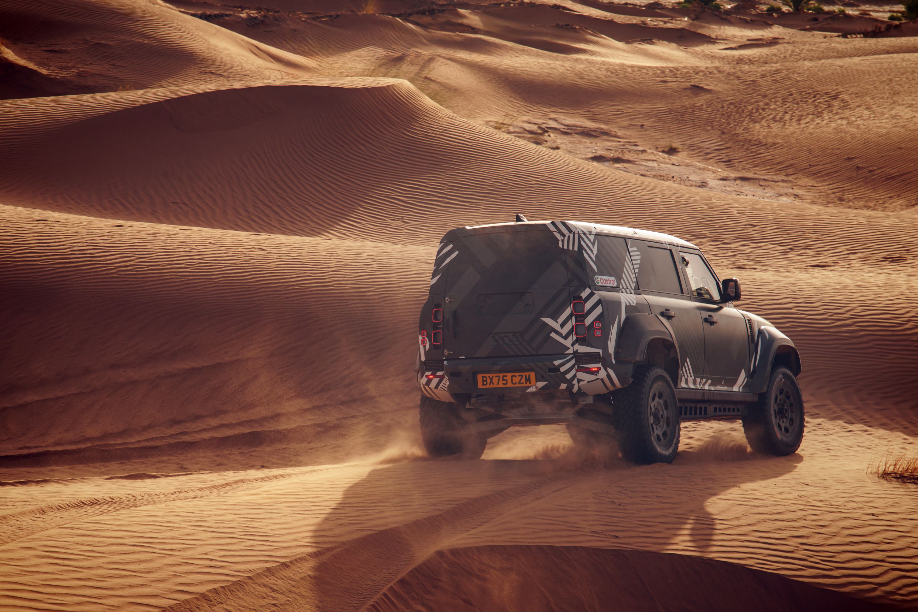 ▪ Defender Rally 車隊世界級的駕駛與導航員陣容,在摩洛哥東部撒哈拉沙漠的極端環境中,駕駛 Defender Dakar D7X-R 進行高達數千公里的測試工作。