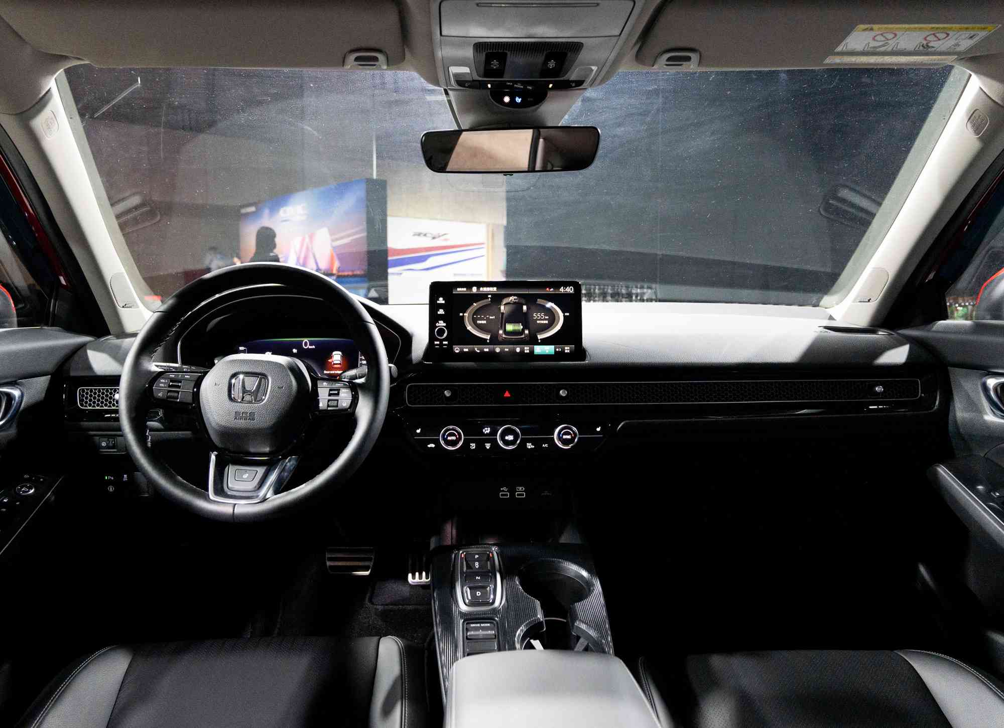 All-new CIVIC e:HEV延續以人為本「MM思想-人性空間最大化、機械空間最小化」設計理念,加長加寬乘坐空間與行李廂容積,締造極致舒適駕乘體驗。內裝以日製歐規高科技質感為訴求,蜂巢狀隱藏式冷氣出風口貫穿整個儀表控台,呼應外觀水箱護罩,另搭載10.2吋數位液晶儀表板、9吋觸控懸浮式主機、無線Apple CarPlay等配備;此外配有Walk-Away Auto Lock離開自動上鎖、跑車化設計上掀外滑式全景式天窗、駕駛座8向、乘客座4向電動座椅調整等舒適科技配備,成就頂級駕乘移動生活。