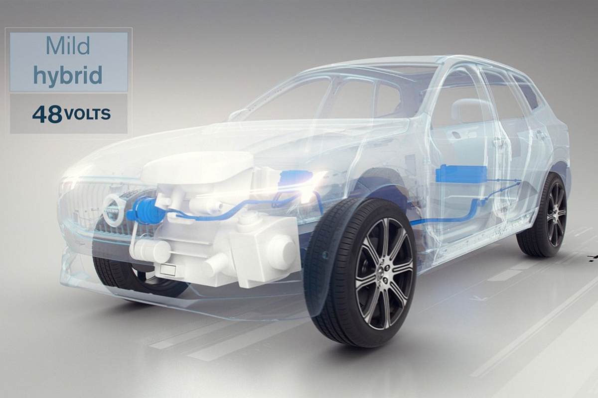 所謂的Mild-Hybrid輕度複合動力系統,通常使用48V系統並將啟動馬達集成交流發電機為一體,能在引擎運作的某些條件下提供輔助以降低燃油消耗。不過因為電池容量相當小,加上輔助效能相當有限,是不能稱為真正的「Hybrid」。