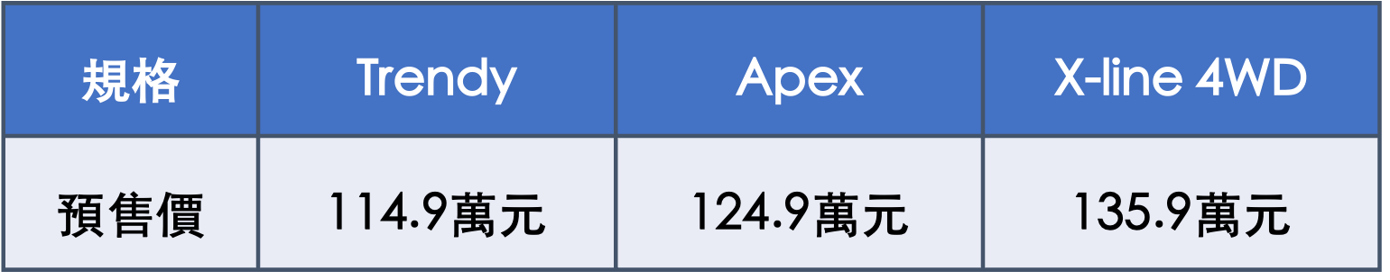 *X-line 4WD限定選配天窗:選配加價新台幣4萬元