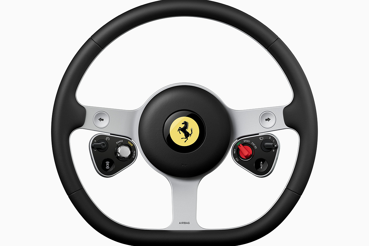 方向盤上的控制按鍵經過精心佈局,劃分為兩個獨立的實體控制區域,在兼顧功能性的同時,呈現出清晰分明的視覺效果,這一直覺設計亦呼應了 F1 單座賽車的操控佈局。每個按鍵都經過精心研發,並由 Ferrari 測試車手完成 20 餘項評估測試,確保實現機械回饋與聽覺回饋的和諧統一。