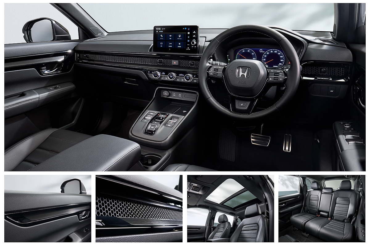 與中國市場日前推出的Honda CR-V全球30年榮耀款不同的是,日規Honda CR-V e:HEV具備專屬RS Black Edition車型,外觀方面如水箱護罩、車頂行李箱架、後視鏡外蓋、輪框、前後保桿下緣等處都採用亮黑色處理。