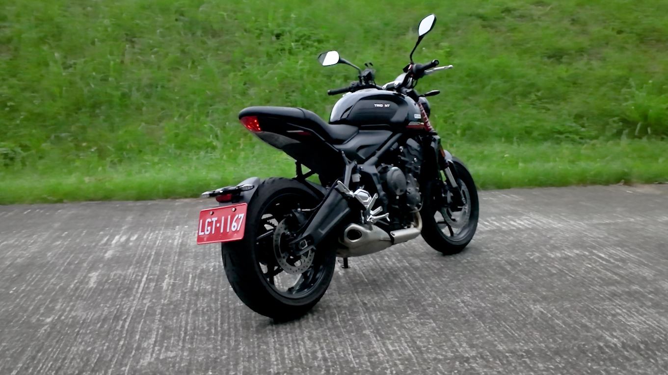 今天試駕的Triumph Trident 660在市場上的定位極為特殊,是在600級距裡可謂是唯一的三缸引擎配置!外觀造型則是滿滿英倫復古風依舊,圓燈、圓形儀表等依舊保留了下來,但整體的造型也不全然是復古的氛圍,在車尾的部分就有融入些現代的感覺,車尾上削式的造型就使它看起來更為俐落!