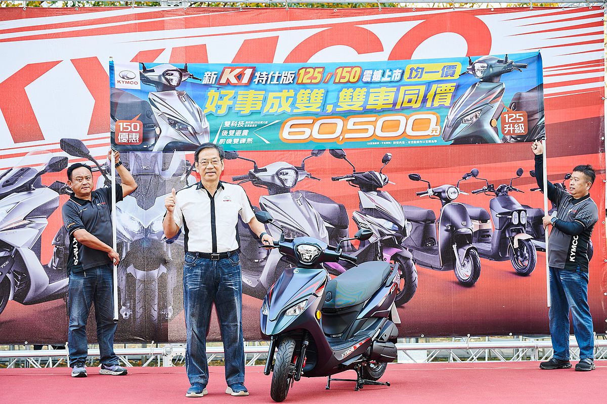 KYMCO「新K1 125/150 特仕版」不僅超越競爭對手,重新定義大眾通用型車款的新級距,劍指125、150市場,目標勝者全拿,積極搶市。KYMCO光陽集團董事長柯俊斌在眾人期待下正式宣布「新K1特仕版 125/150雙車同價最低新台幣60,500元」限時優惠即日開跑,消費者可以開始向光陽全台通路訂購,「新K1特仕版」也正式量產。