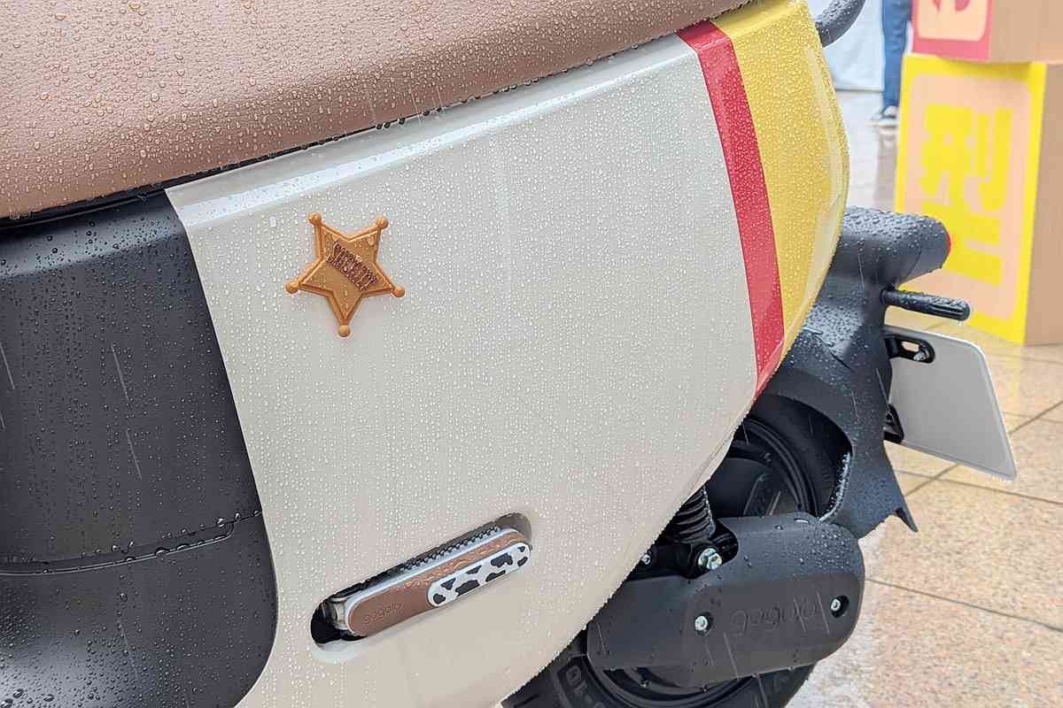 Gogoro EZZY 500 玩具總動員系列共推出兩款,包含以巴斯光年作為靈感的「浩瀚宇宙號」,和翠絲款「歡樂牛仔號」,在車款設計融入一系列有趣彩蛋。車前飾版有玩具總動員徽章,為專屬系列車款提升質感;在車身側邊也有巧思,「浩瀚宇宙號」配置巴斯光年雷射按鈕;「歡樂牛仔號」鑲上《玩具總動員 4》中胡迪交接給翠絲的「警長徽章」,暗藏滿滿洋蔥;加碼標配「極簡頭燈造型矽膠套」,細膩呈現亮眼角色色彩。此外,座墊後方點綴專屬電繡圖騰,角色圖案踏板也選用代表性圖樣,處處呼應《玩具總動員》的經典世界觀。